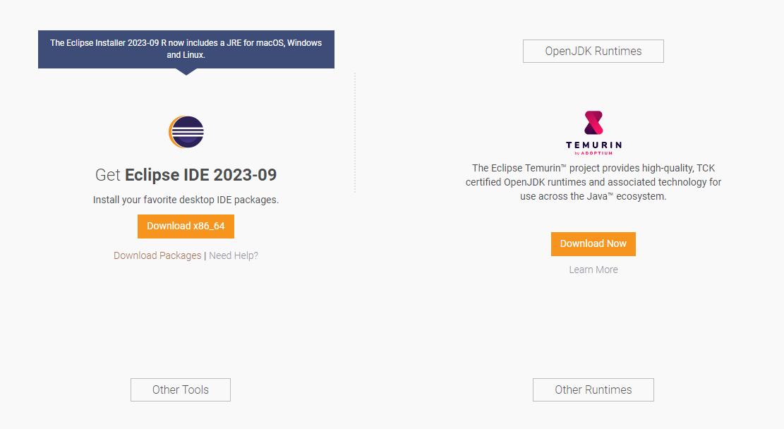 IDE 종류는 Visual Studio, Eclipse, Intellij 등이 있다. 자바를 하기 위해선 보통 Eclipse를 많이 쓰는데 요즘은 Intelij가 뜨고 있다고 한다. 하지만 Interlij는 달마다 구독을 해야 하고 무료 버전도 있지만 무료 버전은 Eclipse랑 별 다른 차이가 없다고 하니 우리는 Eclipse를 다운로드할 것이다.