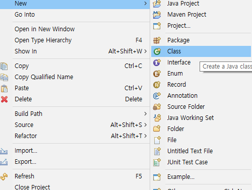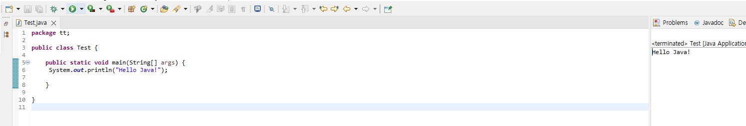 위 사진처럼 Class를 만든 후 Hello Java! 를 출력해 보자!